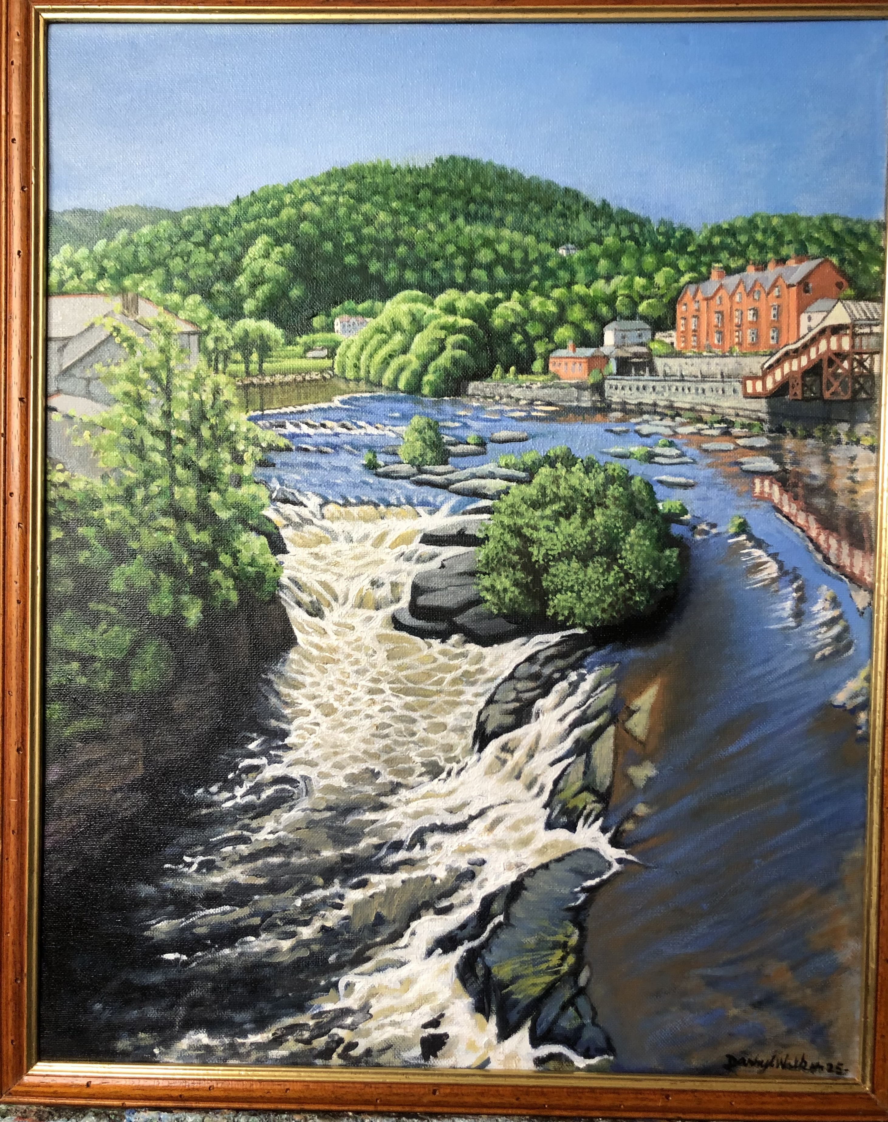 original oil painting of Llangollen and the river Dee from the bridge, painted by Darryl Walker
