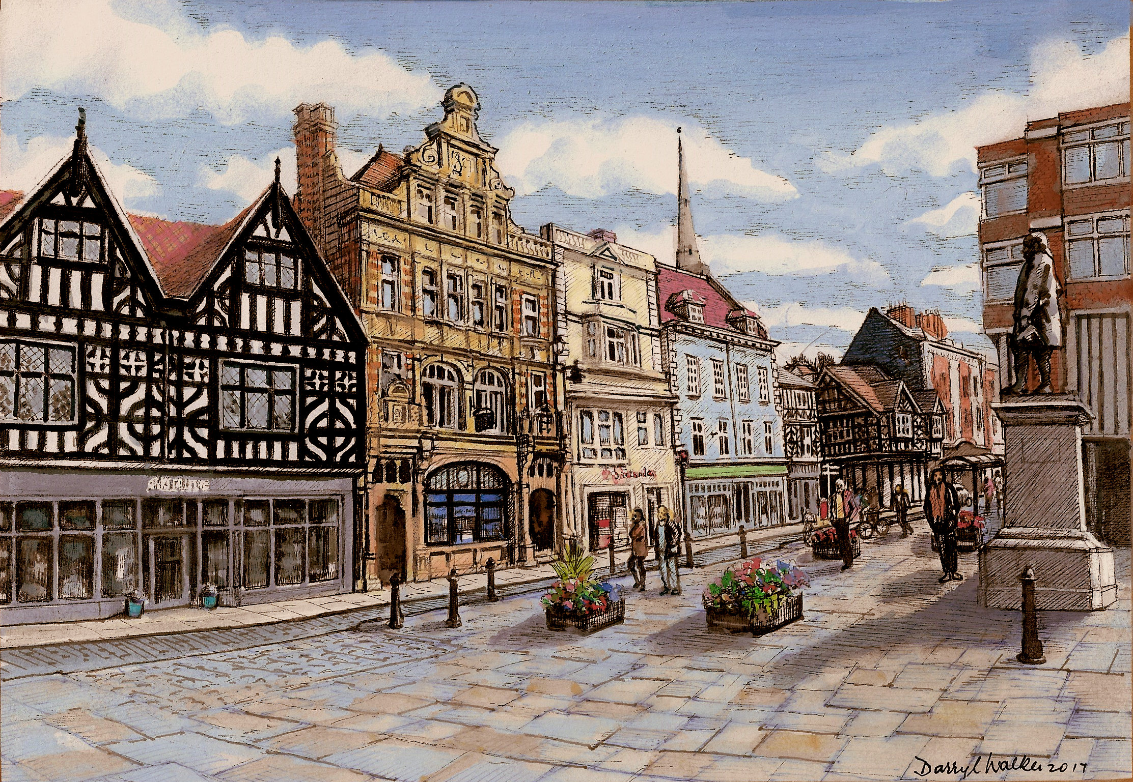 Statue of Clive in the Square Shrewsbury Watercolour Pen and Ink by Darryl Walker 36cm*30cm mounted - available as original artwork or prints